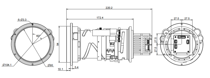 Φ110 (निकला हुआ किनारा) × 221 मिमी, (115 (अधिकतम समग्र आयाम) |