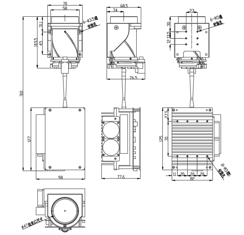 | Lएसर बीम Aएक प्रकार का होना | सुदूर कोण 0.3 °, प्रभावी दूरी> 3000 मीटर, बीम स्पॉट व्यास<φ16m |